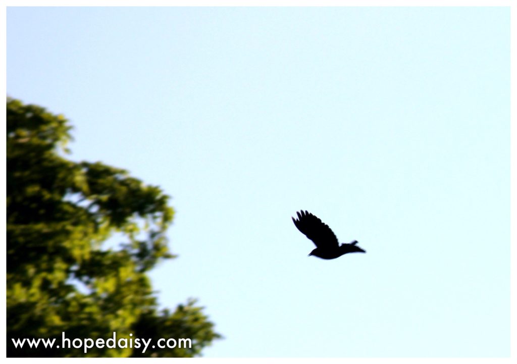 The ruckus under the bush gives way and out emerges a bird. I watch as it takes flight into the warm air. Flapping it’s wings and then gliding across the sky with magnificent grace. My focus remains on this bird until it’s no longer in sight. In this moment I can choose to glide across the sky like this bird, carefree and full of life, with the wind softly brushing up against my cheeks as I marvel at all the beauty around me. Or, I can be buried to the ground with the weight-of-the-world on my shoulders. I have a choice. How will this moment define me?