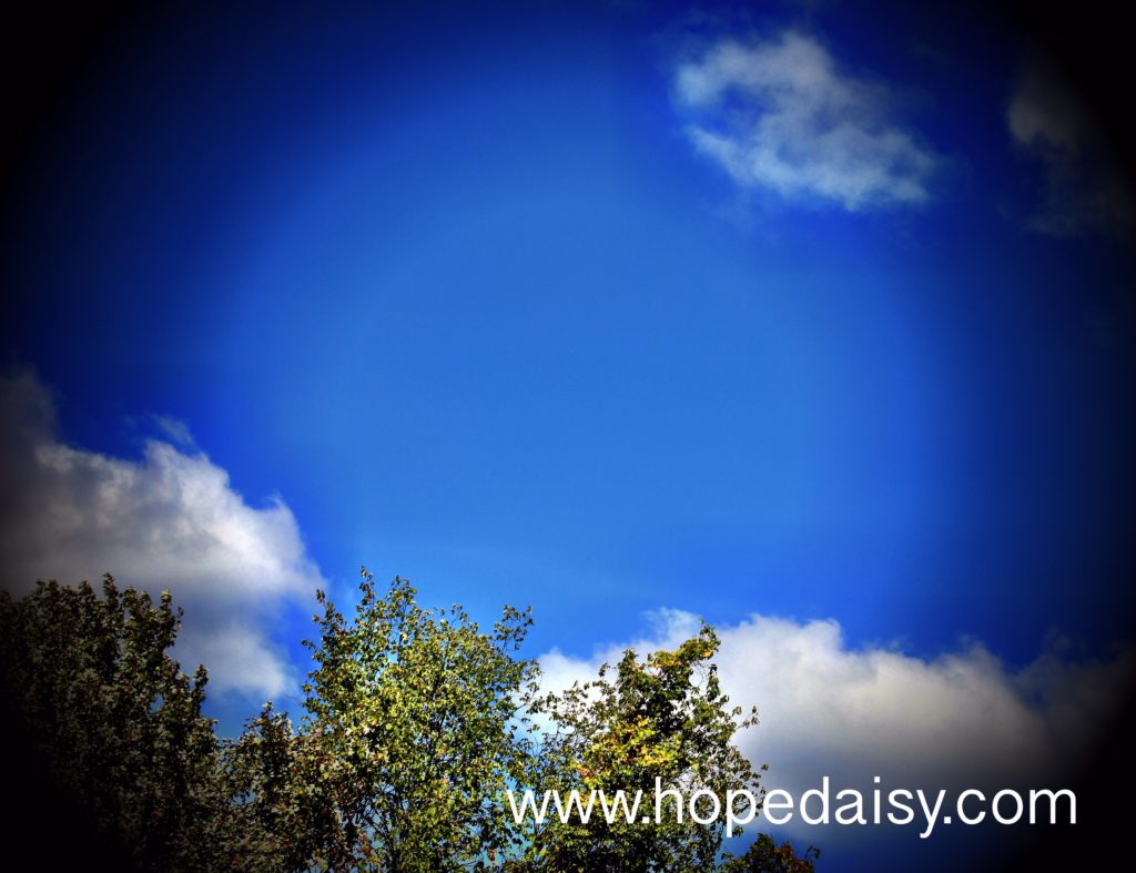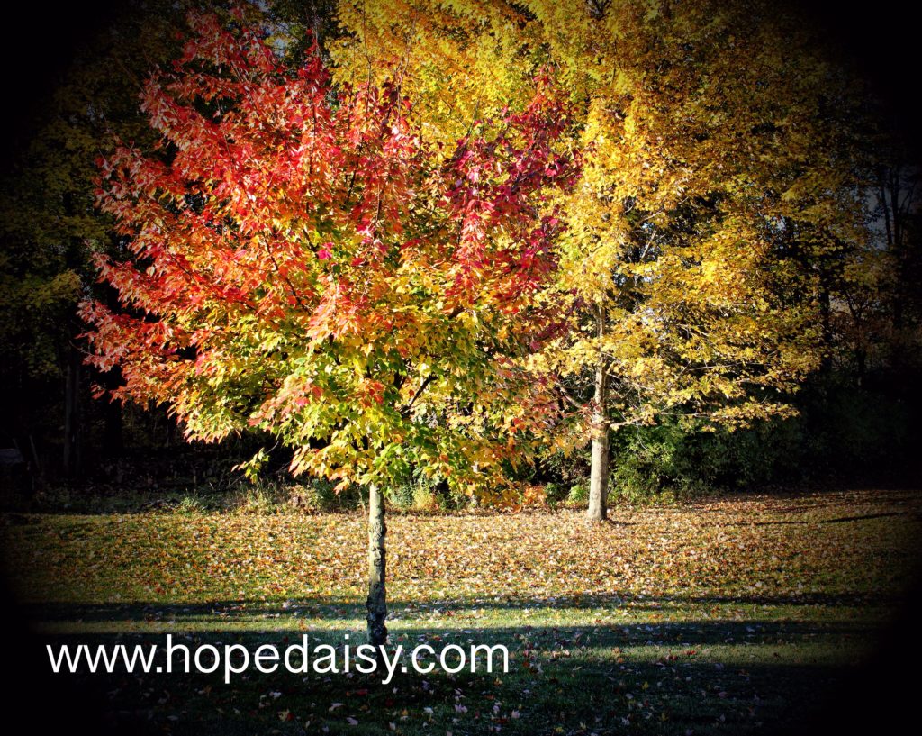 I was recently driving down a two lane road not far from my house. The sky was a vibrant blue and soft-fluffy-white-billowy-clouds filled in the space all around. The sun, and all it’s glory, was shining so brightly within as it peeked its way in between the clouds. Truly picturesque! And…it didn’t end there. Each side of this two lane road was filled with rows and rows of trees in beautiful colors of reds and oranges and yellows. Such a magnificent sight! It’s moments and images like these that you want to capture in your mind so you can pull them out on a rainy day. Pull them out when your heart needs to be filled with beauty and rays of sunshine.